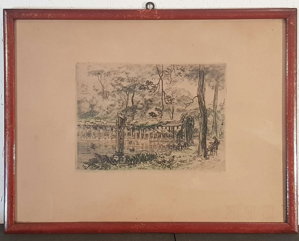 Tableau Lithographie Original signé . Eugène Veder. Titré au dos du tableau.