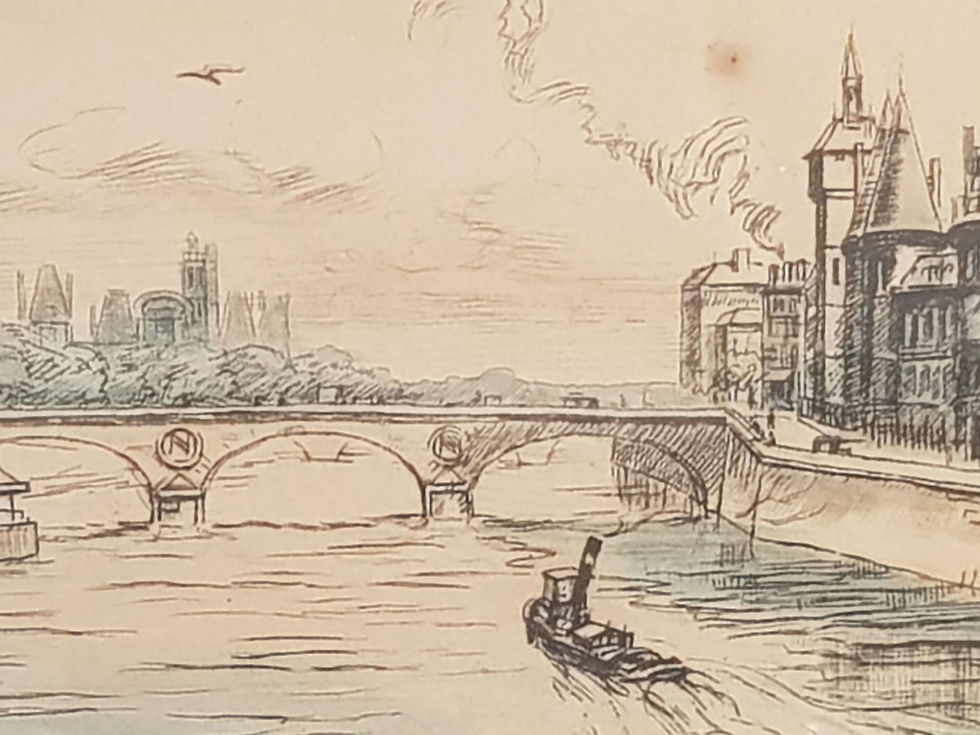 Tableau Lithographie Original signé . Eugène Veder. Pont Napoléon.